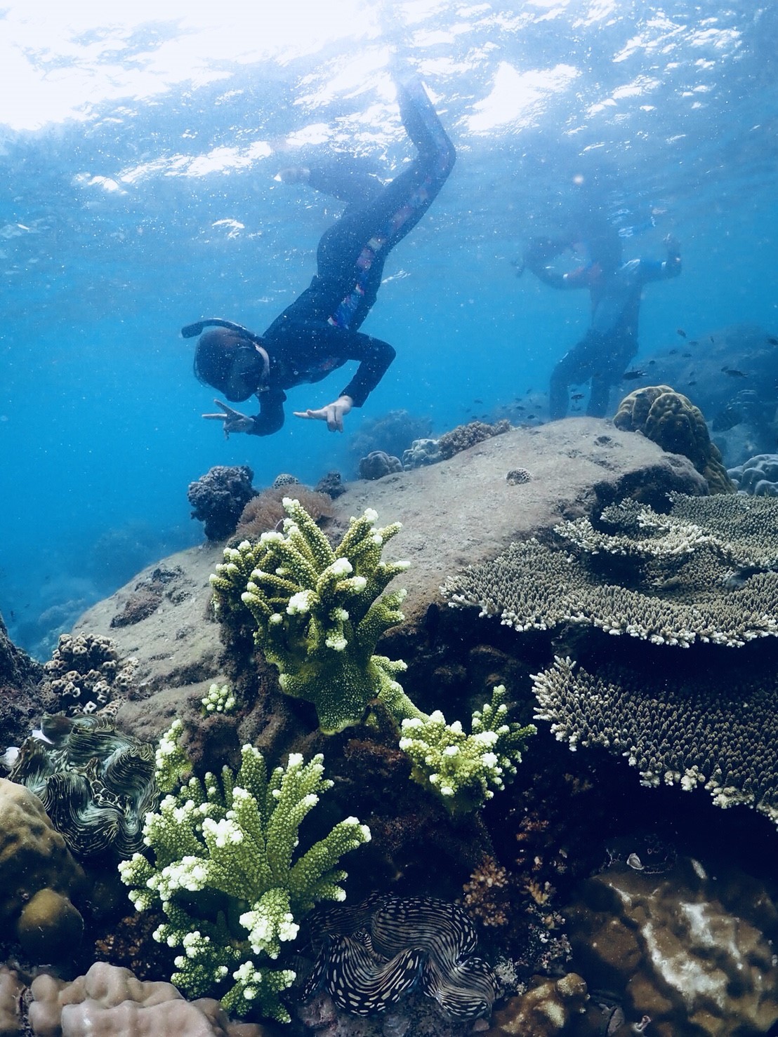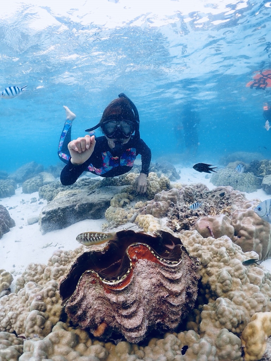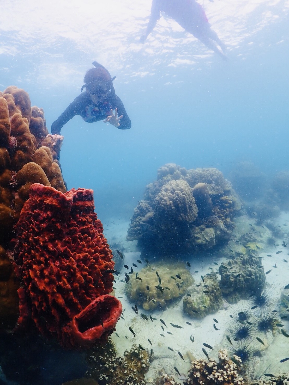 คุณป้าว่ายน้ำไม่เป็นไม่ใช่อุปสรรคในการถ่ายรูปกับปะการัง พี่ไกด์ช่างภาพจัดให้...