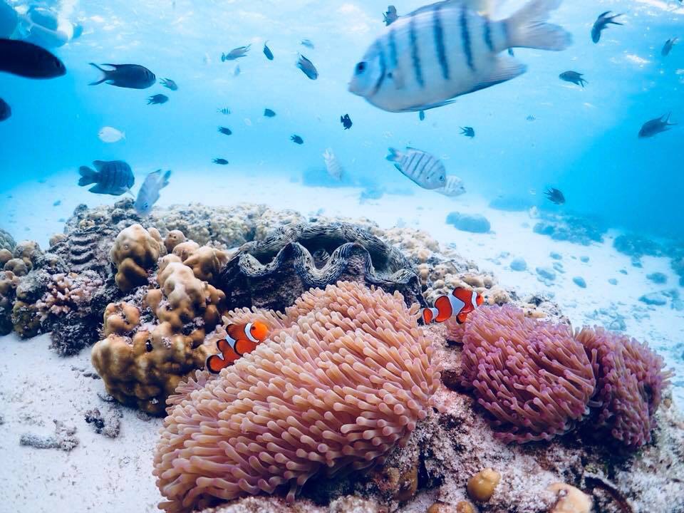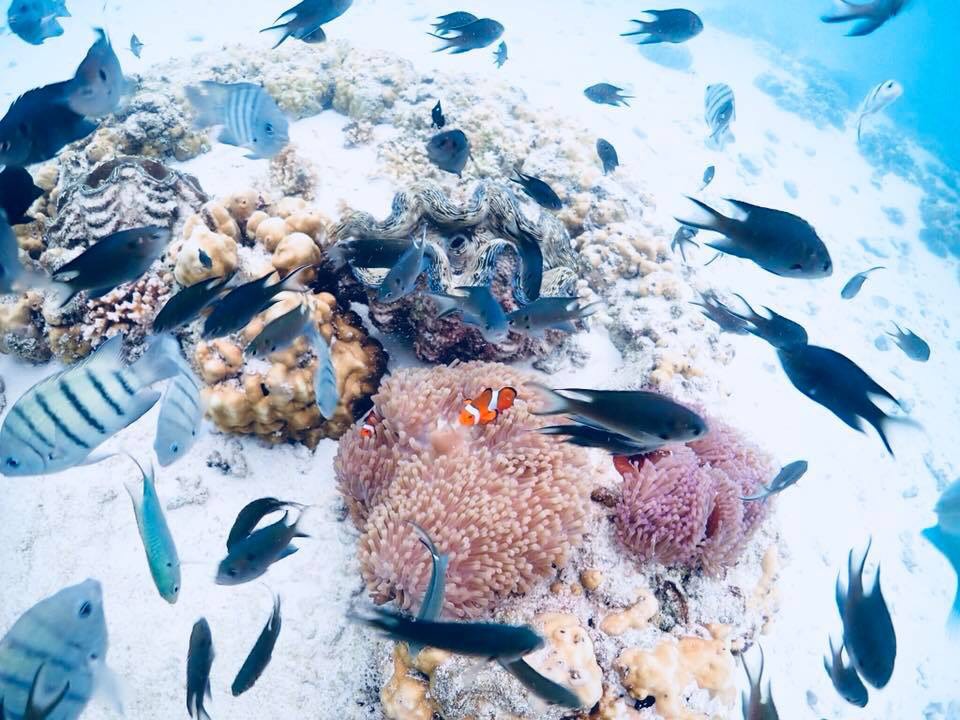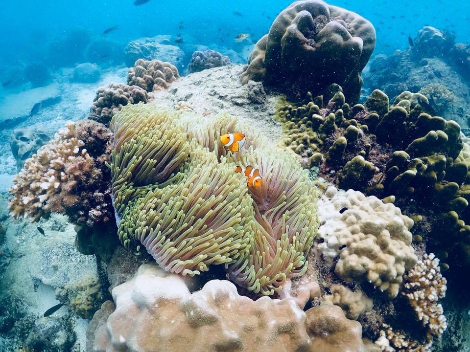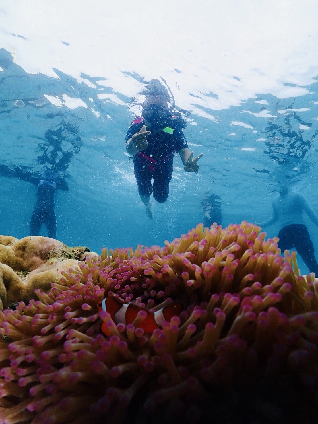 พอลงน้ำมาแล้วเริ่มที่จุดแรกก็ตื่นตาสุดๆค่ะ เจอปลานีโม่ปะการังและหอยมือเสือปลาก็เยอะมากๆ นี่ขนาดอากาศครื้มๆนะคะ ถ้าแดดจ้าจะสวยขนาดไหน