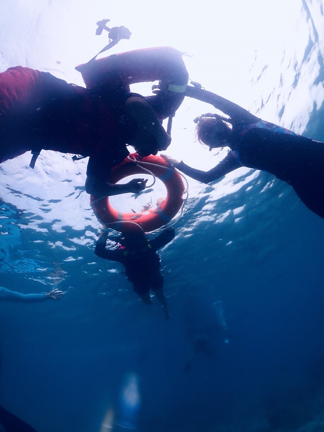 ....นี่คือน้องสาวที่ว่ายน้ำไม่เป็น จะมีพี่ไกด์คอยดูอยู่ข้างๆ........