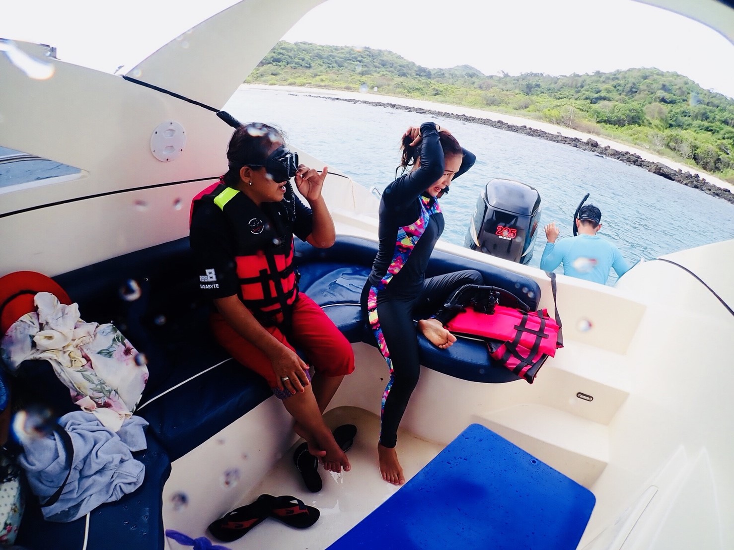 เรือจะเป็นสปีดโบ๊ท ราคาเหมาคือ 3,500 บาทไปได้ 6 ท่าน ถ้าเกินชำระเพิ่มคนละ 600 บาท เรือจะมีทั้งหมด 3 รอบด้วยกันค่ะคือช่วง 8.00น.-11.00น.และ 11.00-14.00น.และรอบสุดท้ายคือ 14.00-17.00น. เราเลือกจองเรือรอบ 8.00น.ค่ะ เพราะจองแบบเร่งด่วน เหลือว่างช่วงเช้าพอดี 555 ชอบมากสุดที่แตกต่างจากทริปดำน้ำทั่วไปคือ ทางเรือมีบริการถ่ายรูปใต้น้ำให้ฟรี!!!จ้า ช่วงที่เราไปคือ วันที่ 29 เมษายน 2561 ค่ะ สภาพอากาศตอนสายๆแอบครึ้มๆเพราะเมื่อวานพี่ไกด์บอกฝนตกทั้งวันค่ะ ตอนแรกแอบคิดว่าน้ำจะขุ่นไม่สวยแน่เลย เพราะไม่มีแดด ผิดคาดจ้าน้ำใสตามภาพเลย